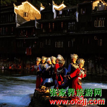 金鞭溪因流經(jīng)金鞭巖而得名,全長5710米,穿行于絕壁奇峰之間,溪谷有繁茂的植被,溪水四季清澈,被稱為“山水畫廊”、“人間仙境”。有詩贊曰:“清清流水青青山,山如畫屏人如仙,仙人若在畫中走,一步一望一重天”。途中你會看到點(diǎn)歌臺,那里有土家姑娘時刻準(zhǔn)備為游人唱民族歌曲,只要付十元錢她們就會為你引吭高歌,當(dāng)然,如果你不想花這個錢,也可以在一邊聽聽別人點(diǎn)的歌,聽完后走人。