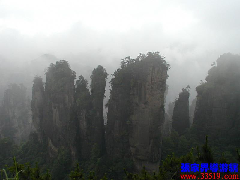 (山頂環(huán)覽線:五指峰、前花園、黑樅垴)朋友們!這里的每一座巖峰都是一件古老的藝術(shù)品,每一座巖峰都隱藏著大自然的無窮奧秘。面對如此壯美雄奇、氣象萬千的砂巖峰林風(fēng)光,幾年前,一位來自東北的女作家,就站在黃石寨(黃獅寨)上感嘆道:看了張家界的風(fēng)光,覺得真可以死了。接下來她又說,看了張家界的風(fēng)光,覺得更有理由好好活了。兩句話看起來前后矛盾,其實不然:前一句是說能見一到像張家界這樣奇美的風(fēng)光,此生足矣;后一句是說人生是如此美好,理應(yīng)更加珍愛生命。大家說對不對? “人生不到張家界,百歲何能叫老翁。”