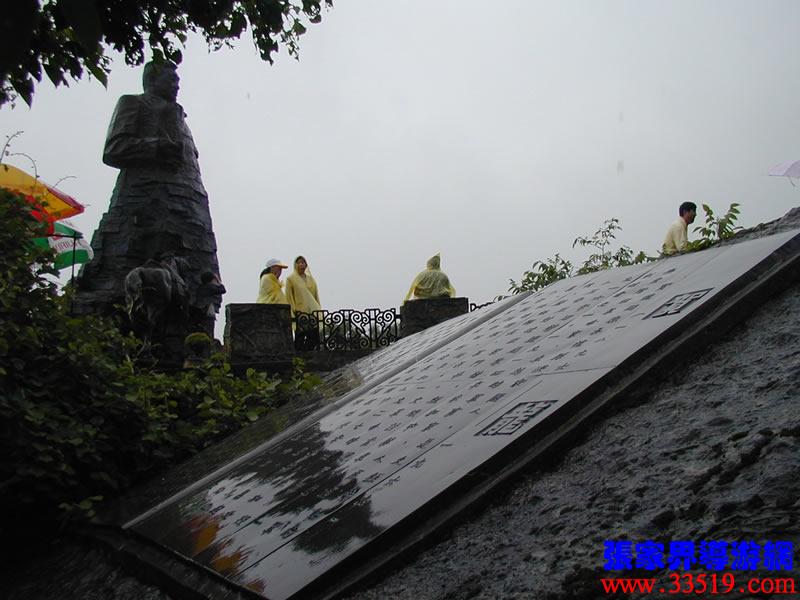 (賀龍銅像)賀龍元帥是中華人民共和國的開國元勛,人民解放軍的締造者之一。他就出生在天子山西邊桑植縣洪家關(guān)的一個農(nóng)民家庭,從兩把菜刀砍鹽局首義起,一生充滿傳奇色彩,元帥家鄉(xiāng)流傳著無數(shù)關(guān)于他的故事與傳說。天子山一帶曾經(jīng)是賀龍、任弼時、肖克、王震等將軍打過游擊的地方。一回,賀龍在鑼鼓塌被民團包圍了,當(dāng)?shù)乩习傩占敝猩牵奄R龍卷在斗墊里,躲過了殺身之禍。這個故事至今還在這一帶流傳。