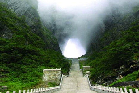 早上8:00長沙火車站集合后,經(jīng)長張高速往張家界市,赴天門山國家森林公園旅游,乘坐“世界第一長高山客運索道(全長7455米,高差1279米)”, 體驗騰云飛翔的刺激震撼,28分鐘到天門山頂:登張家界之巔云夢仙頂,俯瞰張家界全景,體驗凌空獨尊的豪情, 游覽東線碧野瑤臺景區(qū),觀賞奇妙美麗的盆景花園,游覽盆景石區(qū)、天門翻水、北俯視天門、靈泉、靈泉院,登云夢仙頂,體驗“云生腳下、奇峰盡覽、萬象目中”的豪邁感覺。游西線體驗鬼谷棧道的驚心動魄,在峭壁云端縱情尖叫。返凌霄臺欣賞城區(qū)風光、領略山水長卷的磅礴氣勢,攀登 999 級臺階的上天梯,抵達天門洞底,感受造化神奇,盡情欣賞天門洞內外的壯麗景色。至天門洞體驗自然造化的神奇和震撼沖擊。乘觀光汽車體驗99彎通天大道奇絕,沿途觀賞七級瀑布、金龜馱元寶、將軍峰、箭桿峰等景觀,天門山氣象獨特,門洞奇絕,植被豐富,歷史悠久,是歷史文化與佛道文化的神秘載體,是自然景觀與人文景觀的完美結合,故也是蜜月度假必游之地。
