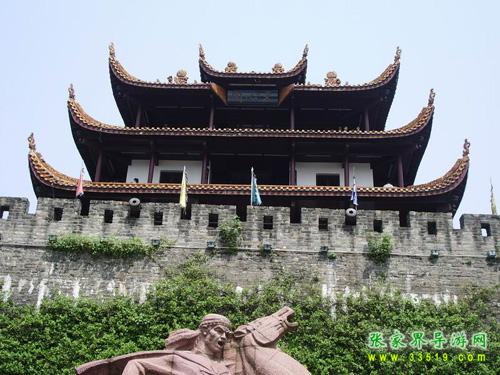 作為楚漢名城,長沙2000多年前就有寬厚的夯土城垣。明初悉改石基磚砌,外繞護城河。辛亥革命后拆城墻修環(huán)城公路,僅地勢最高的天心閣一段作為勝跡保留。時人有聯(lián)曰:“閣上九霄迎日月,城留一角看江山”。這段古城墻現(xiàn)長387.8米,高13.4米,頂面寬6.1米。分內(nèi)外兩城,外城又筑南北兩月城,內(nèi)有藏兵洞、炮洞等,并留清代鐵炮4門。城墻上尚存的斑斑彈痕,向人們訴說著城墻下的一段悲壯歲月:1852年9月10日,太平軍抵長沙南門外。西王蕭朝貴身先士卒,躍馬揮劍,在前沿指揮攻城,不幸于9月12日中炮犧牲。以此為背景,《太平軍魂》群像雕塑1993年10月在天心閣古城墻下揭幕,向世界展示了一曲農(nóng)民革命戰(zhàn)爭的悲壯頌歌。