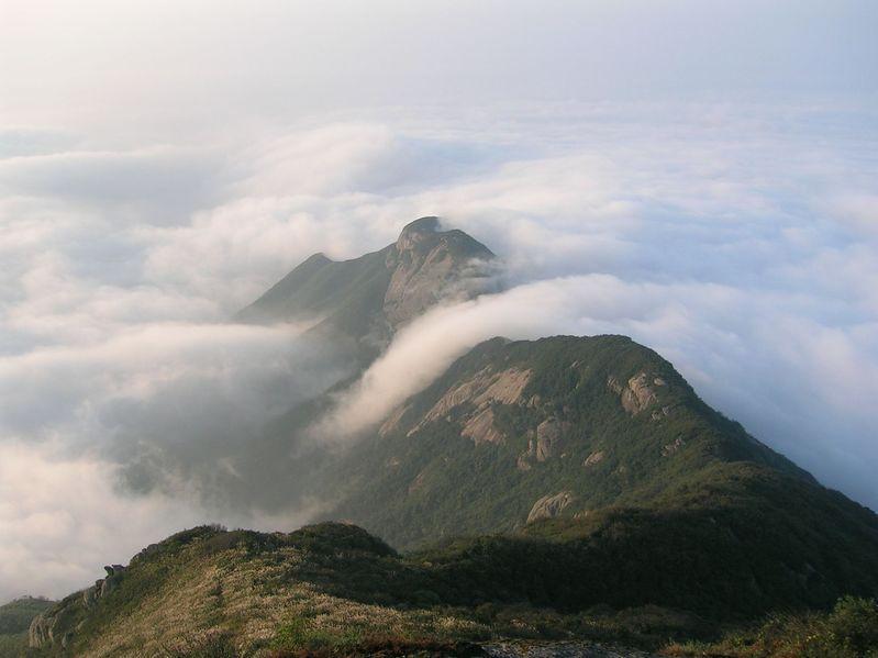 山巔祝融峰,海拔1290米,由于煙云的烘托和群峰的疊襯,構(gòu)成了"萬丈祝融拔地起,欲見不見輕煙里"的雄姿。登臨其上,可見北面洞庭湖煙波渺渺,若隱若現(xiàn),南面群峰羅列,如障如屏,水面湘江逶迤,宛如玉帶,西面雪峰山頂,銀濤翻騰,萬千景象,盡收眼底。