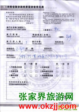 2010年5月3號(hào)湘潭王先生一行5位旅游質(zhì)量反饋