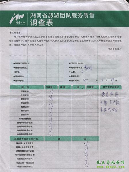 2011年5月27日胡先生一行6人旅游質(zhì)量反饋:導(dǎo)游熱情開朗,下次過(guò)來(lái)還找她