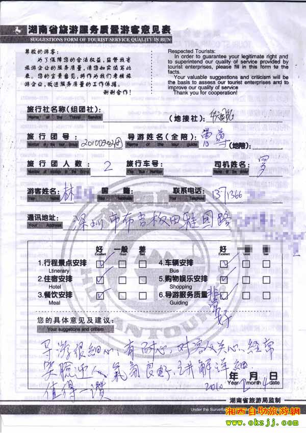 2010年2月4號林小姐一行兩位旅游質量反饋