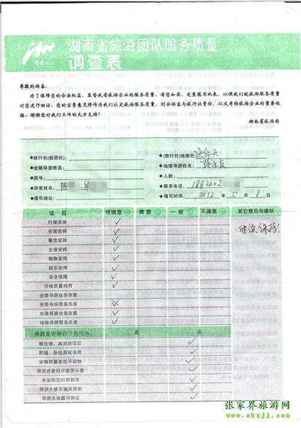 2012年5月1日陳小姐一行2人旅游質量反饋:繼續(xù)保持