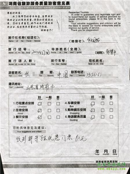 - 2011年10月26日張小姐一行18人旅游質(zhì)量反饋 [10482]