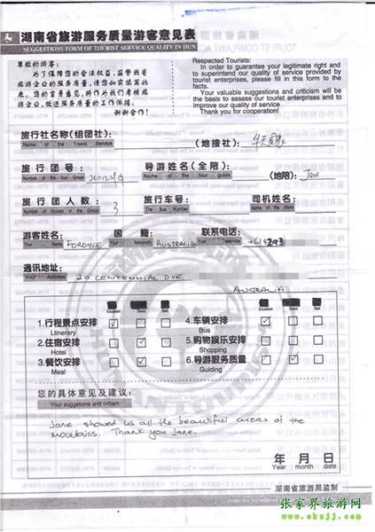 - 游客夏先生為表揚導(dǎo)游李姣姣寫來表揚信致我張家界... [14811]