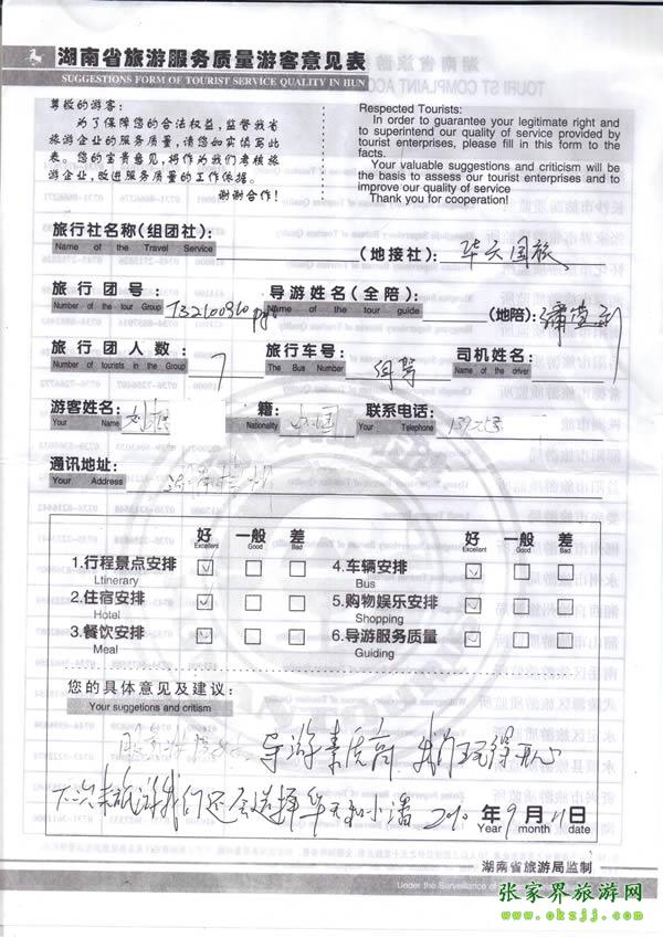 - 游客夏先生為表揚(yáng)導(dǎo)游李姣姣寫來表揚(yáng)信致我張家界... [14811]