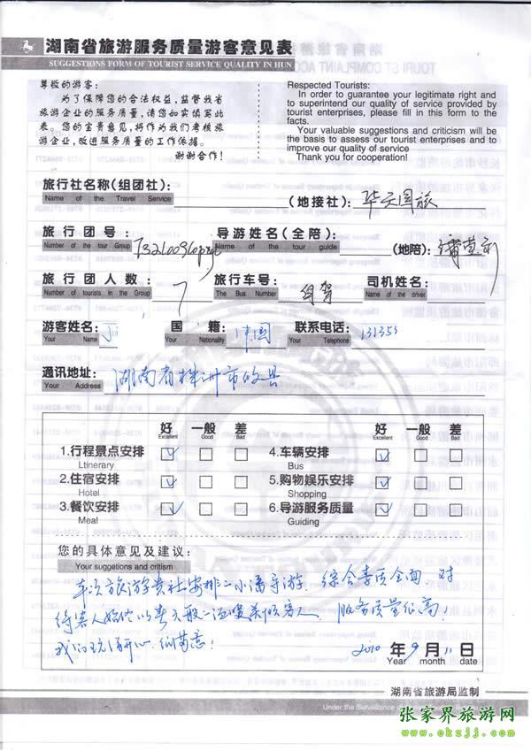 - 2011年10月26日張小姐一行18人旅游質(zhì)量反饋 [10482]
