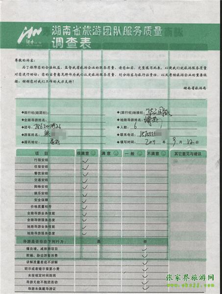 2011年9月12日梁先生一行6人旅游質(zhì)量反饋