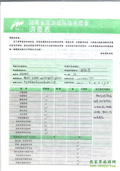 2012年4月13日梁先生一行5人旅游質量反饋:非常滿意