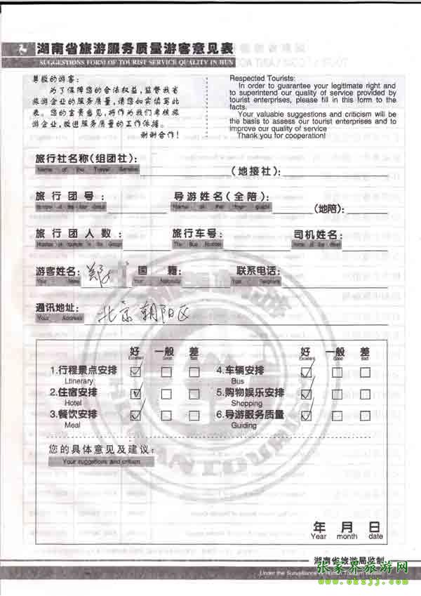 2010年9月19日北京鄭小姐旅游質(zhì)量反饋