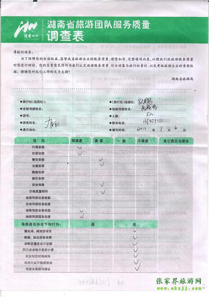 2011年7月6日郁小姐一行5人旅游質(zhì)量反饋