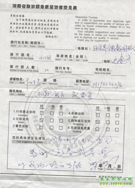 - 游客夏先生為表揚導游李姣姣寫來表揚信致我張家界... [14811]