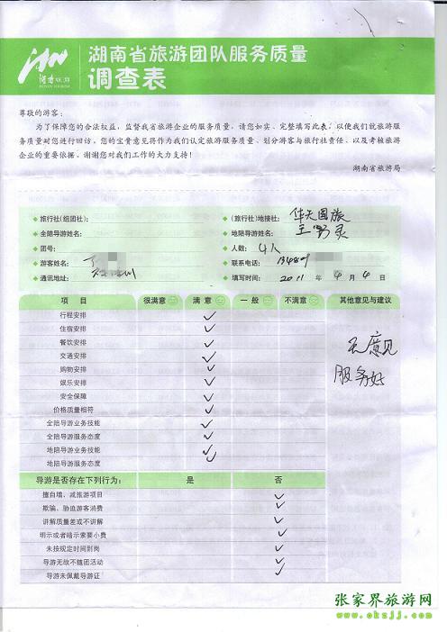 - 2011年10月26日張小姐一行18人旅游質(zhì)量反饋 [10482]
