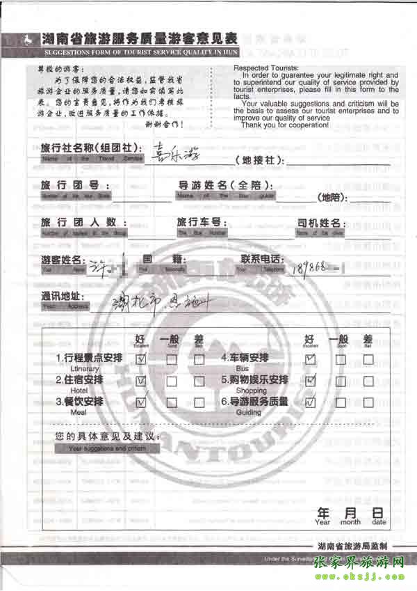 2010年7月25日許先生旅游質(zhì)量反饋
