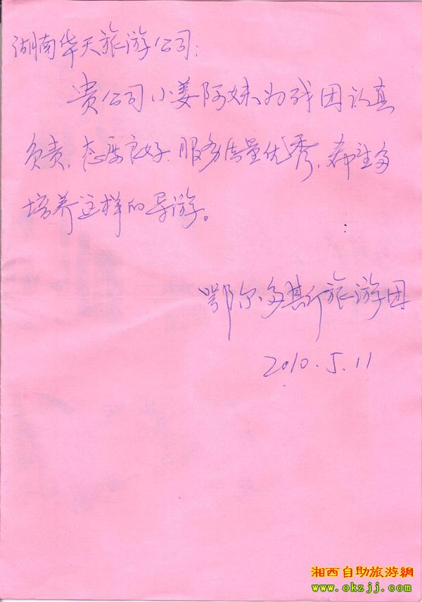 - 游客夏先生為表揚導游李姣姣寫來表揚信致我張家界... [14811]