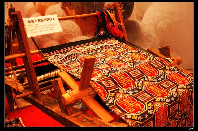 土家織錦,就是土家姑娘用一種古老的木腰機(jī),以棉紗為經(jīng),對(duì)五彩絲線或棉線(當(dāng)今也有用毛線)為緯,完全用手工織成的手工藝術(shù)品。土家織錦的藝術(shù)品種,經(jīng)過(guò)一兩千年的演變,現(xiàn)在已發(fā)展到100多個(gè),除原有的“西蘭卡普”(即被面花)以外,又根據(jù)時(shí)代的變化織出了各種圖案的壁掛、香袋、服飾、旅游袋、沙發(fā)套、坐墊、地毯、室內(nèi)裝飾等多種工藝美術(shù)品。聰明的土家姑娘,她們心靈手巧,表現(xiàn)山水,表現(xiàn)人物,表現(xiàn)樹(shù)木花卉與飛禽走獸,形象逼真,栩栩如生。 土家織錦產(chǎn)區(qū)主要分布在龍山縣苗兒灘、張家界、撈車及靛房、坡腳;永順縣縣對(duì)山、風(fēng)棲;保靖縣的普絨、清水等地。春秋戰(zhàn)國(guó)時(shí)期,“表布”(即土家錦)即已成為貢品。