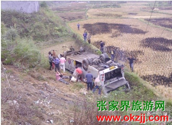 丈龍鼻嘴發(fā)生交通事故 09年9月16號下午,到古丈經(jīng)過的時候發(fā)生了一起重大交通事故.交警,消防,120都到達(dá)了,正在 展開救援,目前2死,N傷. 是一輛黑色吉普車緊急調(diào)頭,張家界的旅游大巴車速過快,沒剎住車,先是撞到路邊 的路桿,之后從變壓器旁邊沖了下去.! 這臺張家界旅游車(湘GY1133)在經(jīng)過古丈境內(nèi)時發(fā)生翻車事故,目前已經(jīng)造成2人死亡,多人受傷, 尚不知道出事車上導(dǎo)游和司機(jī)生死情況,我們將繼續(xù)關(guān)注、提醒各位導(dǎo)游,一定要提醒師傅注意車速,安全行 車,不可因為一味趕時間忽略安全.